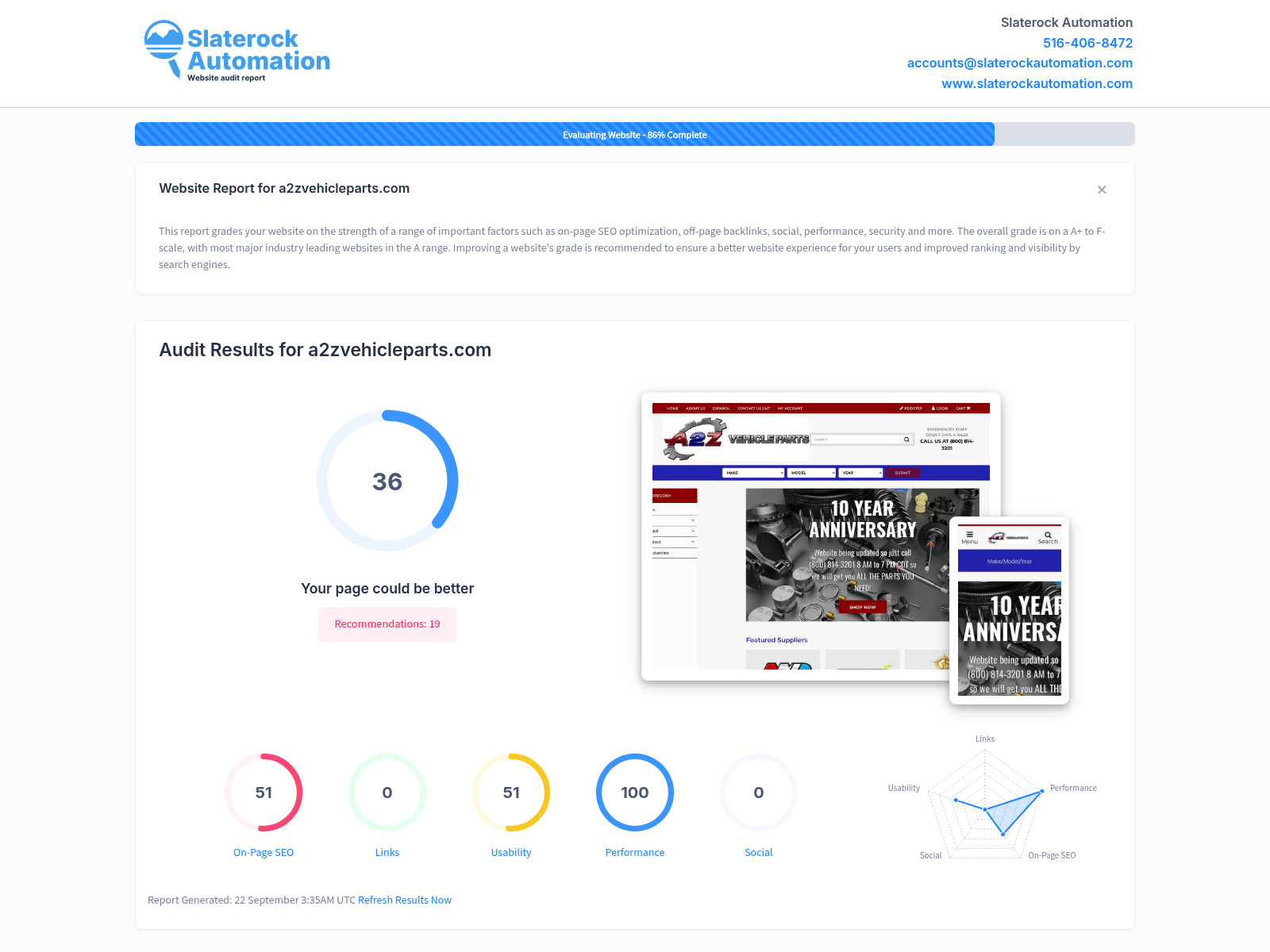 View the Website Audit Report for A2Z Vehicle Parts located in Harris County, Texas.