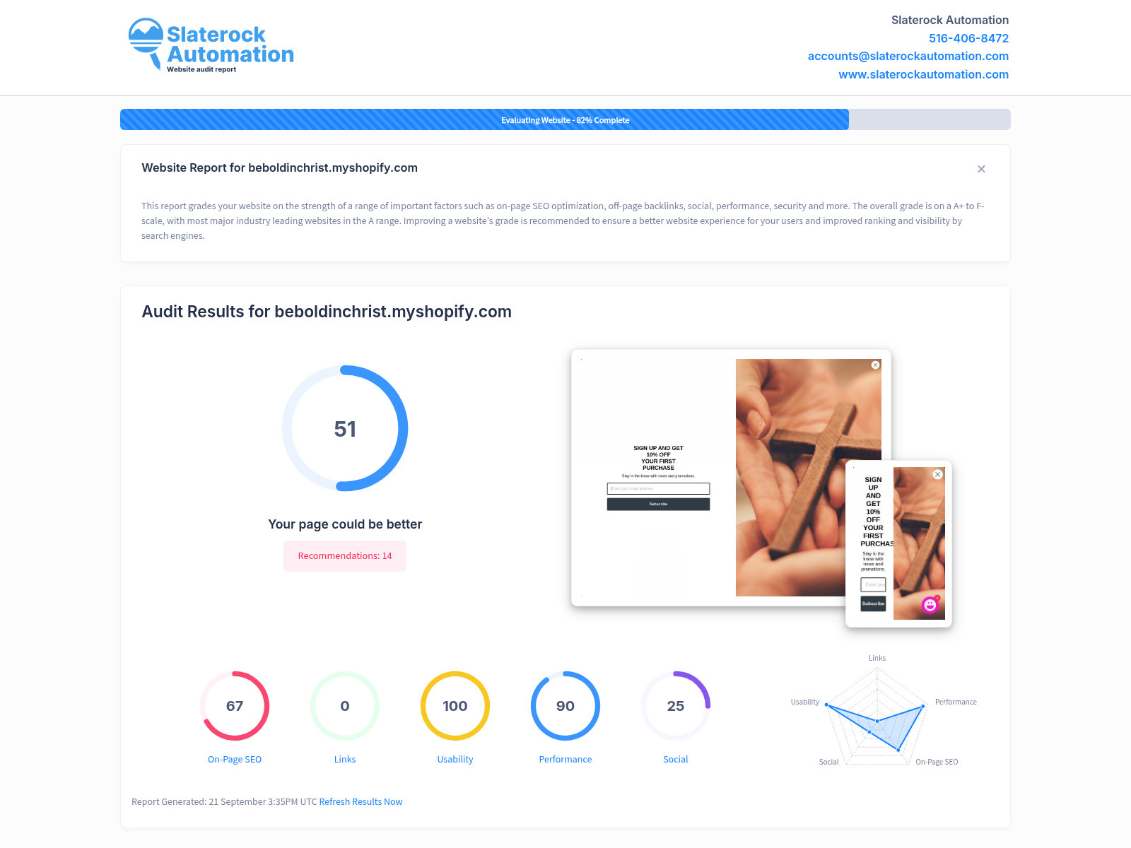 The website beboldinchrist.myshopify.com currently holds an overall score of 51, indicating there's significant room for growth and enhancement to ensure a better user experience and improved search engine ranking. It performs exceptionally well in useability and performance metrics, scoring 100 and 90 respectively, testament to a well-structured site that is user-friendly and with efficient load times. Despite these strengths, there is a notable absence of backlinks, reflected in a score of zero, which is an area that needs immediate attention as these are fundamental for organic search performance. Consistent improvement of on-page SEO, standing at 67, would also significantly increase site visibility. The social metric, at 25, suggests an opportunity to bolster online presence through more active engagements on social media platforms. All considered, implementing strategic enhancements, particularly on backlink acquisition and social media engagement, can significantly optimize traffic and lead flow to your website.