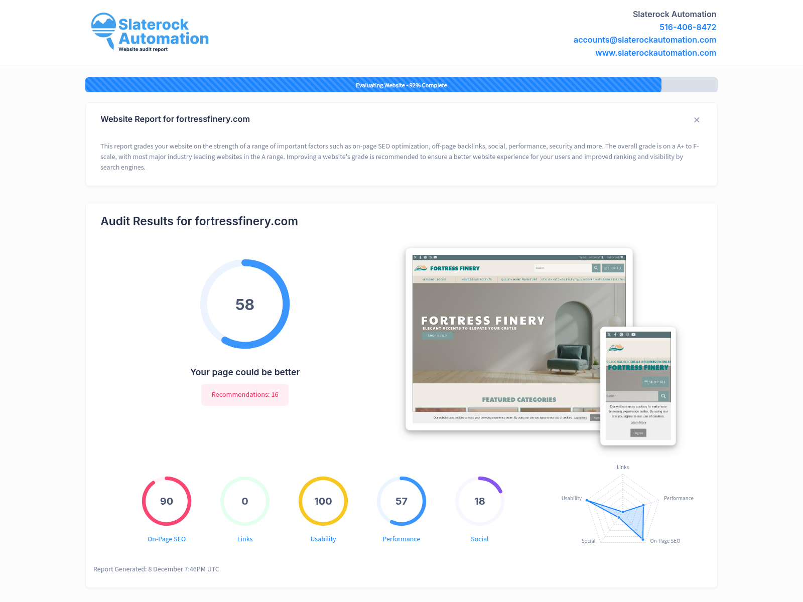 View the Website Audit Report for Fortress Finery located in Placer County, California.