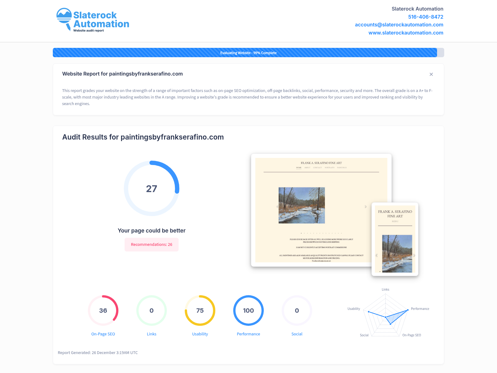 View the Website Audit Report for Paintings by Frank Serafino located in Grainger County, Tennessee.