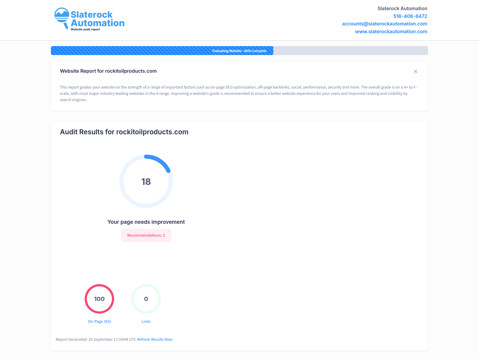 Website Overview Report for Rockit Oil Products