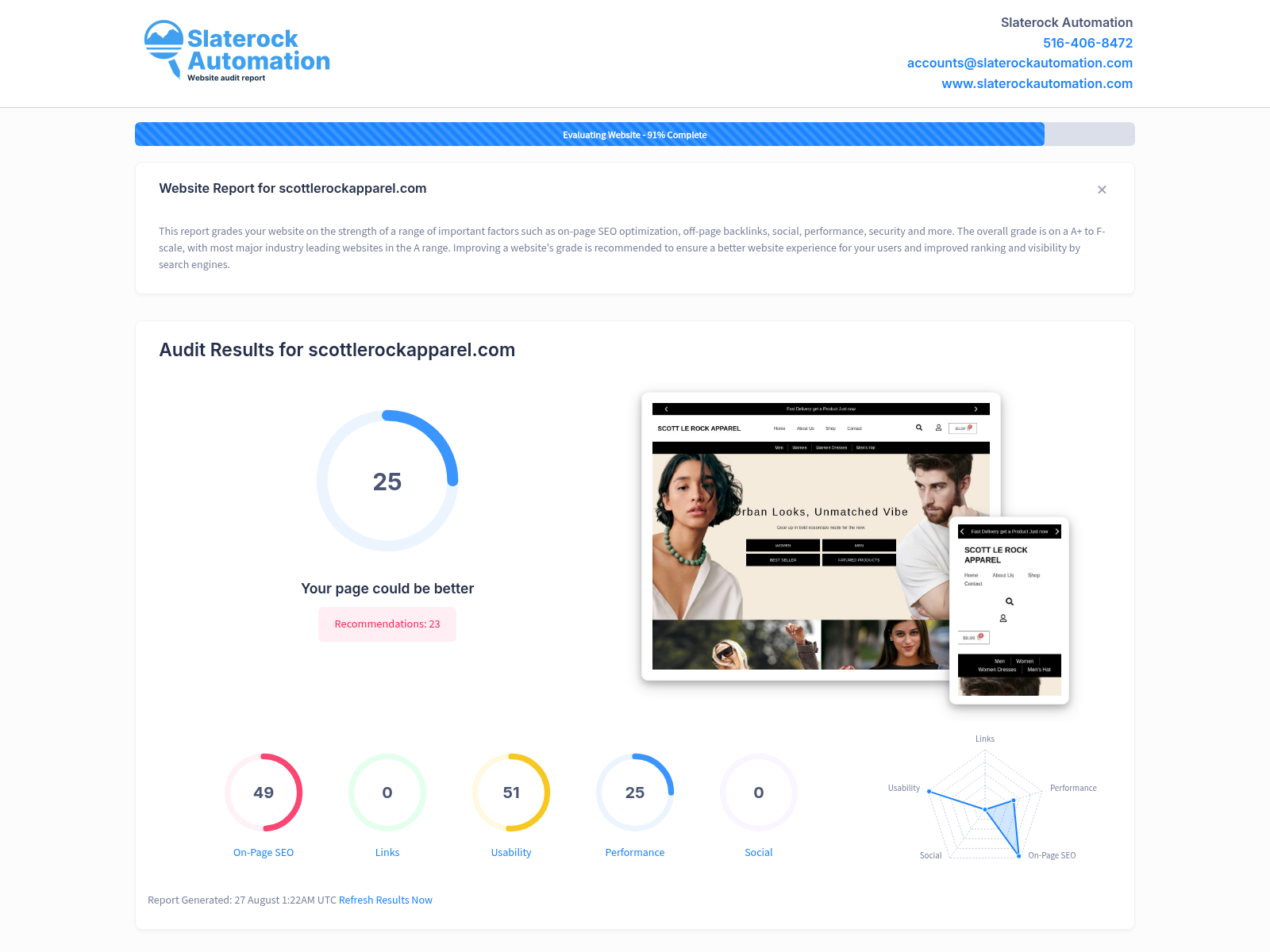View the Website Audit Report for Scottlerock Apparel located in Broward County, Florida.
