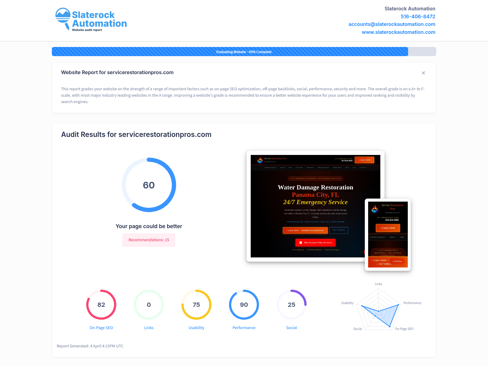 View the Website Audit Report for Service Restoration Pros located in , .