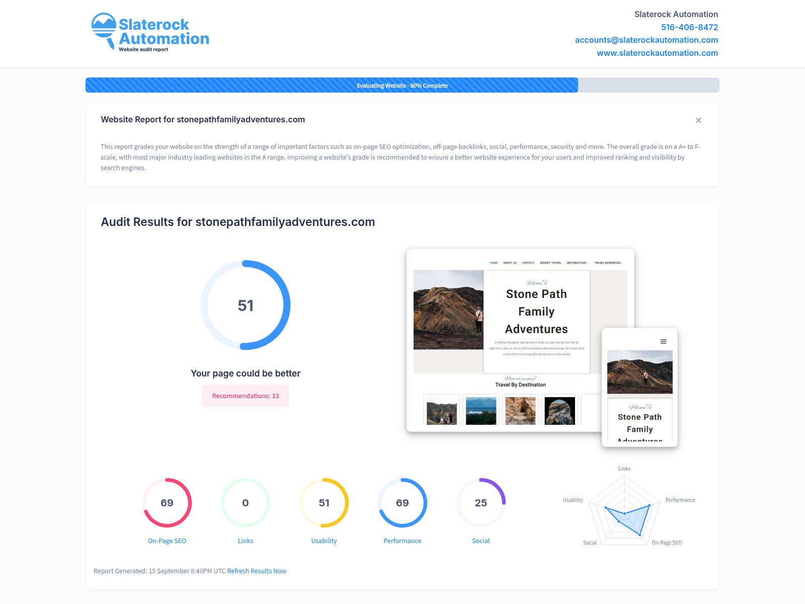 View the Website Audit Report for Stone Path Family Adventures located in Worcester, Massachusetts.