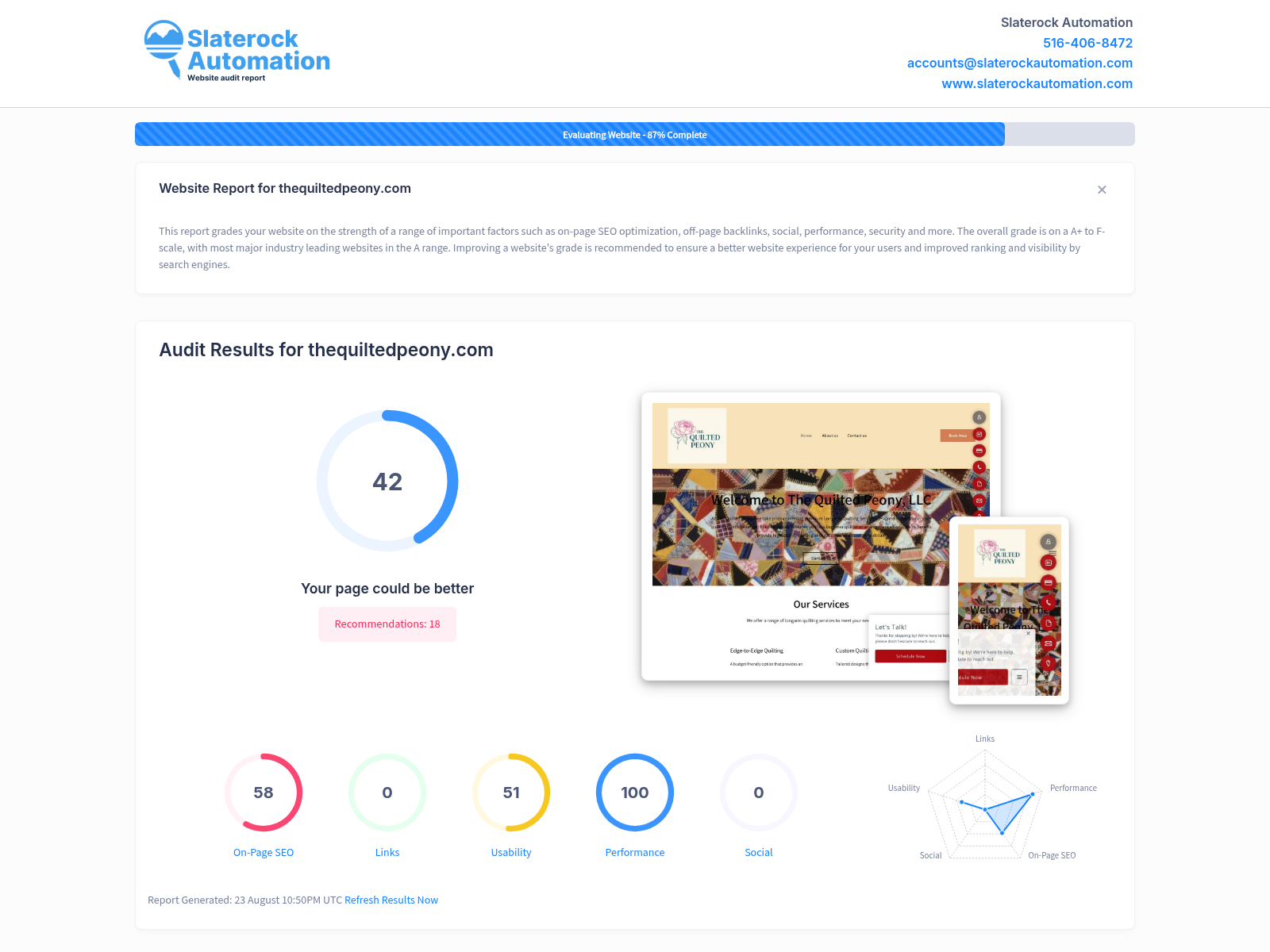 View the Website Audit Report for The Quilted Peony located in Lamar County, Alabama.