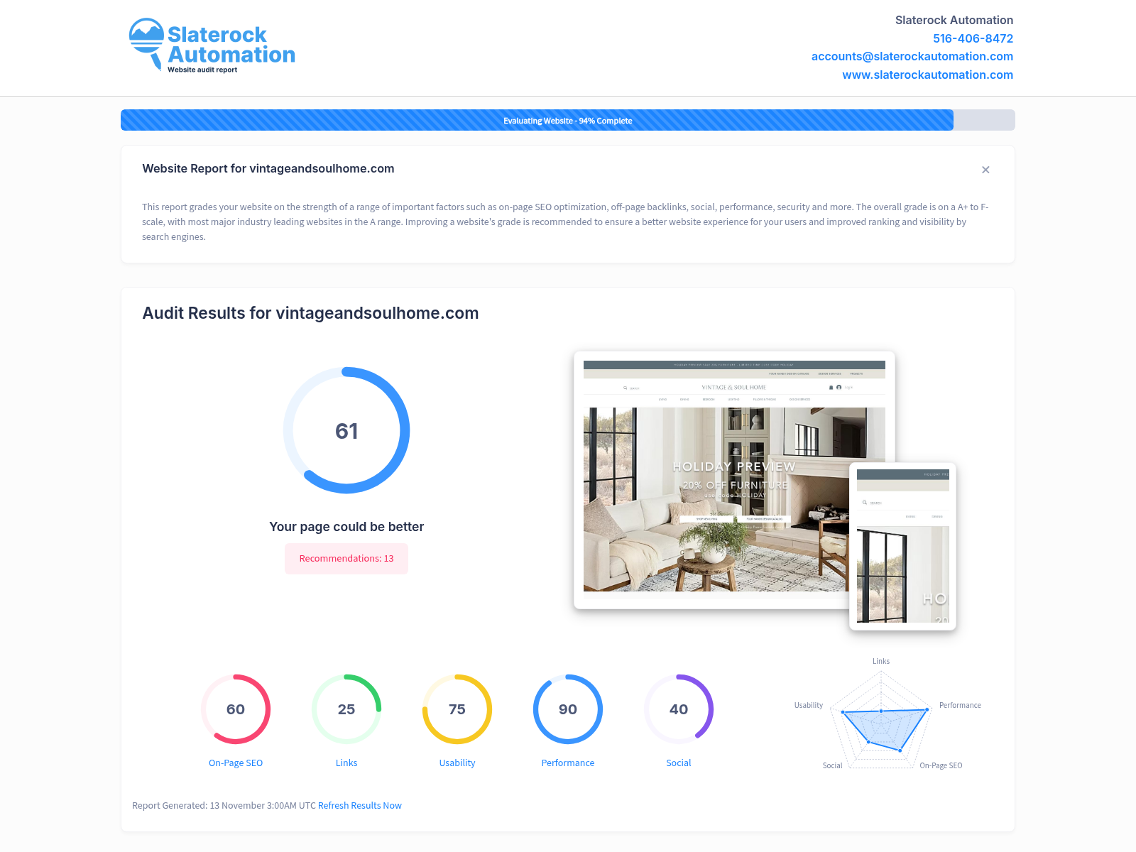 Website Overview Report for Vintage and Soul Home